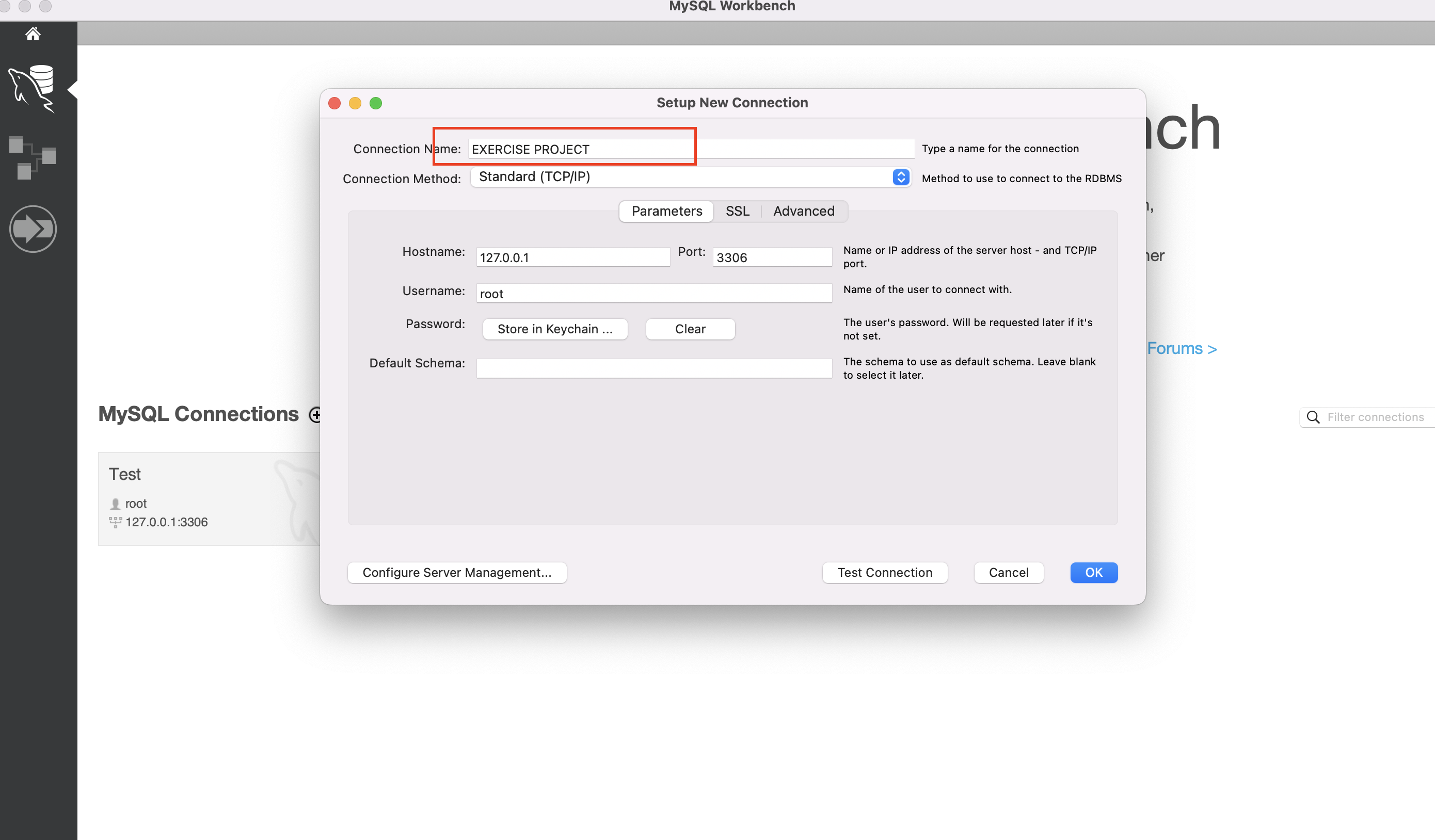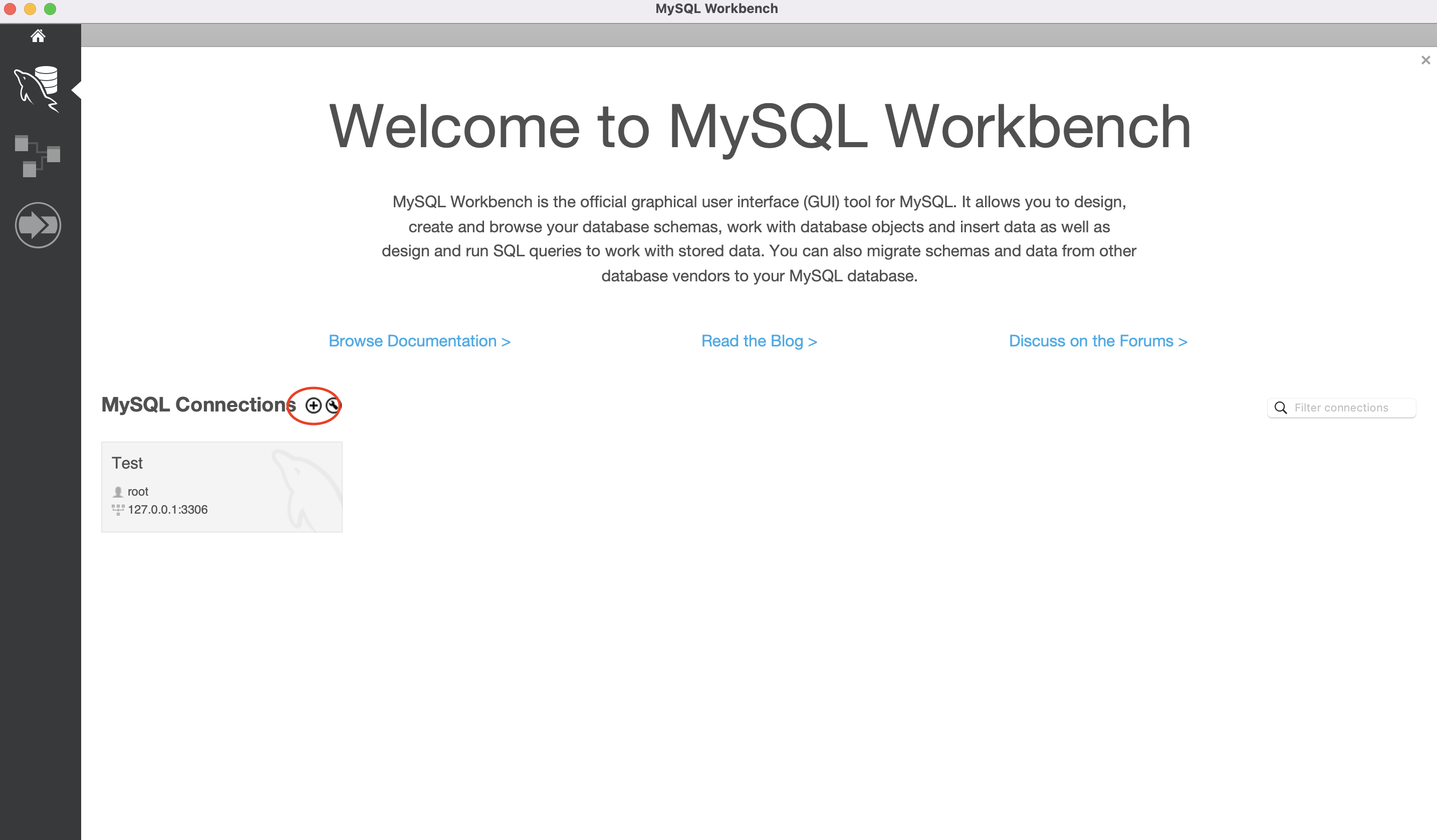 WORKBENCH 구동 후, 새로운 연결을 만들어줍니다. 이 때 지금 쓰는 OS가 맥이어서 그런지, MYSQL과 Microsoft SQL과의 차이인지 정확하지는 않지만, 연결이 SQL Server에 비해 좀 더 직관적이고 간편했습니다.