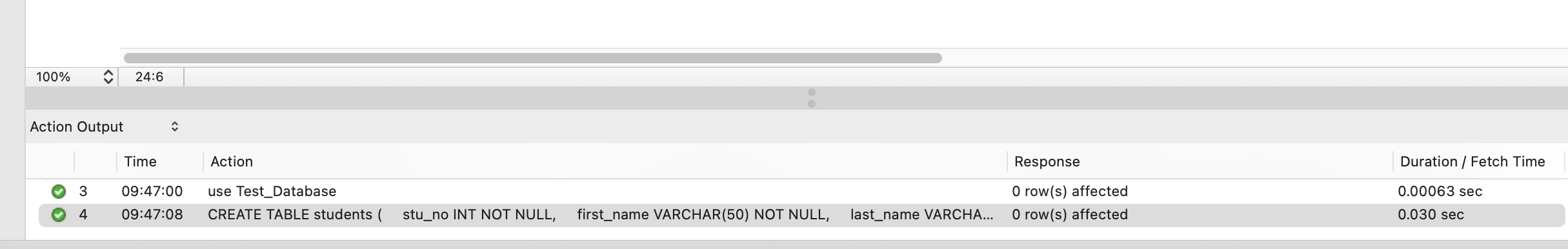 이번에는 테이블 생성 명령문이 정상적으로 작동한 모습을 볼 수 있습니다.