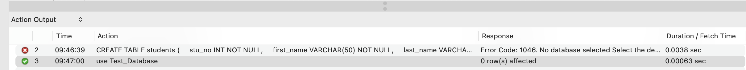 Response를 읽어보니, 'No Database Selected'라고 나와있습니다. 왜냐하면, 테이블을 생성할 데이터베이스를 미리 선정해줘야 하기 때문인데요, 이는 'Use' 문법을 통해 생성합니다.