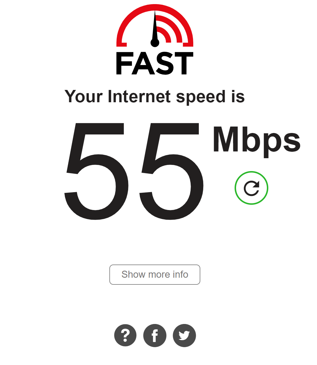 실제로 사용하면서 넷플릭스에서 제공하는 인터넷 속도 측정 사이트를 통해 측정해보니, 50~55Mbps는 꾸준하게 나와주더라구요. 이 정도면 앞으로 인터넷 걱정은 없을 거 같아요.