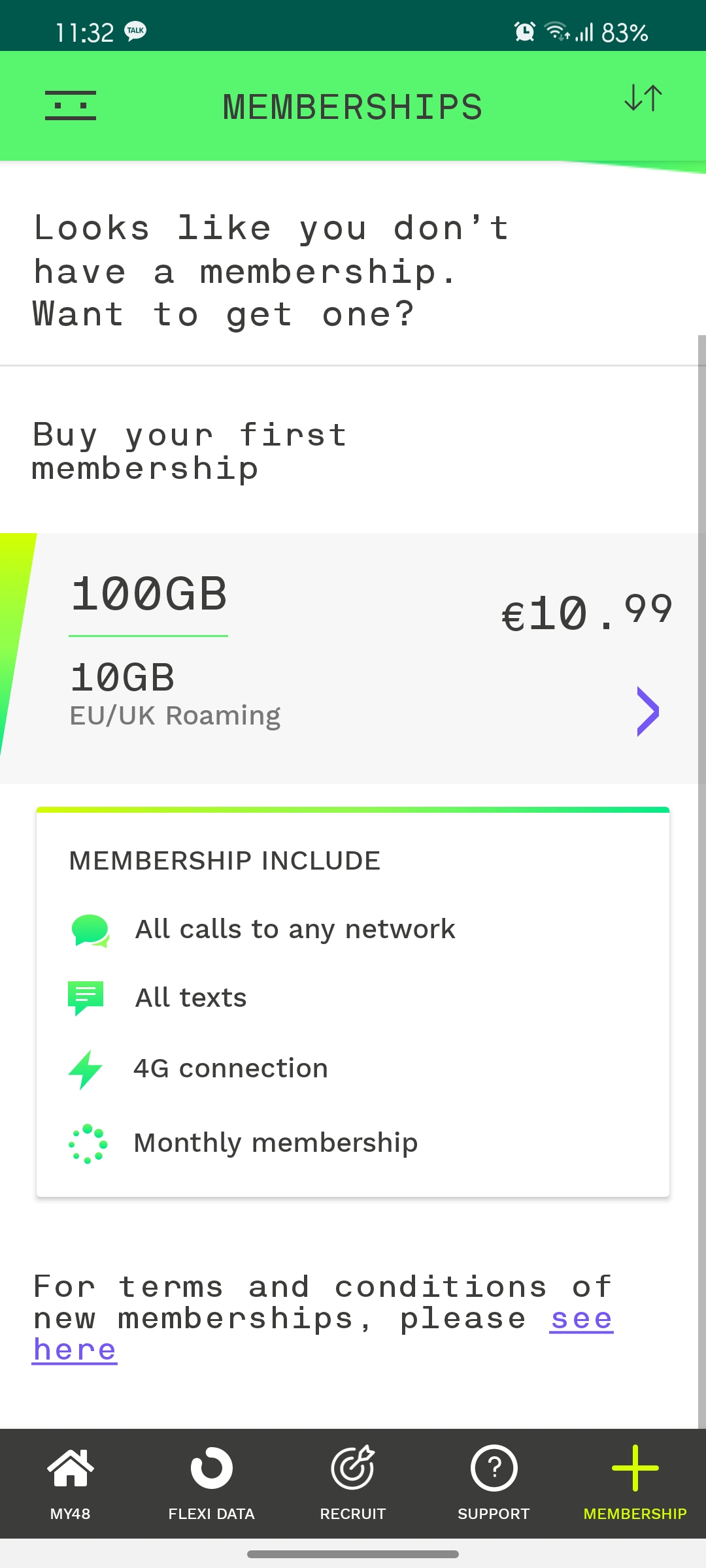 48심은 요금제가 하나 밖에 없어보입니다.